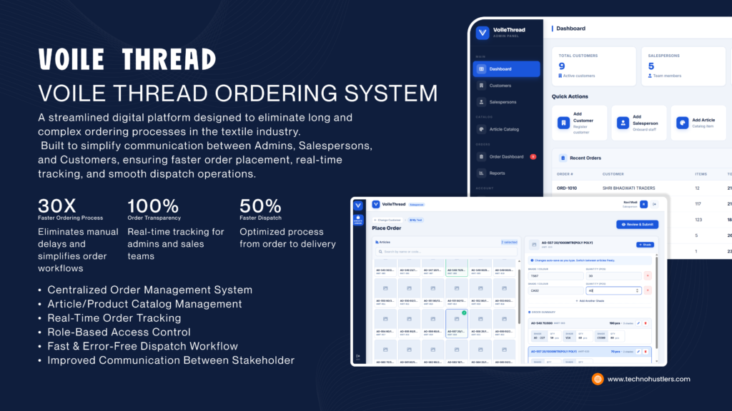 The Voile Thread Ordering System is a streamlined digital platform designed to simplify and accelerate the ordering process in textile businesses.