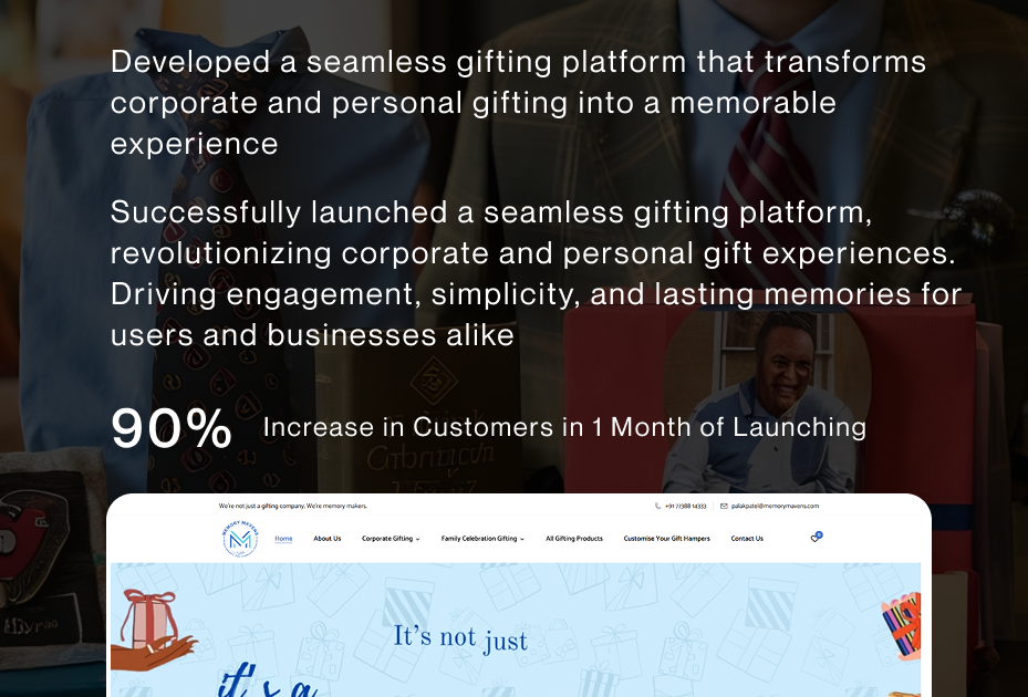 PROJECT Memory Mavens Turning emotions into beautifully curated, personalized gifts Explore Website.View Demo. Industry: Gifting E-Commerce Region: USA Platform: Web Project Overview Memory Mavens is a thoughtfully designed online gifting platform focused on...